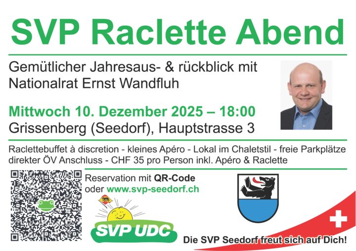 3. SVP Raceletteabend der SVP Seedorf mit Ernst Wandfluh